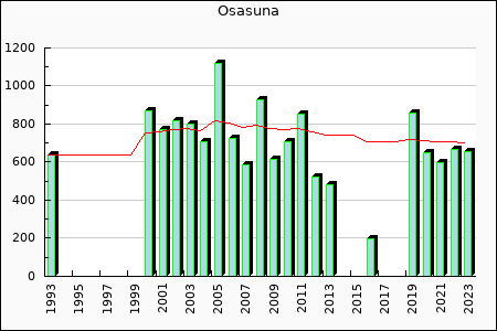 CA Osasuna played 16 games this season Performance of CA Osasuna is worse compared to the same opponents last year (2 points less).